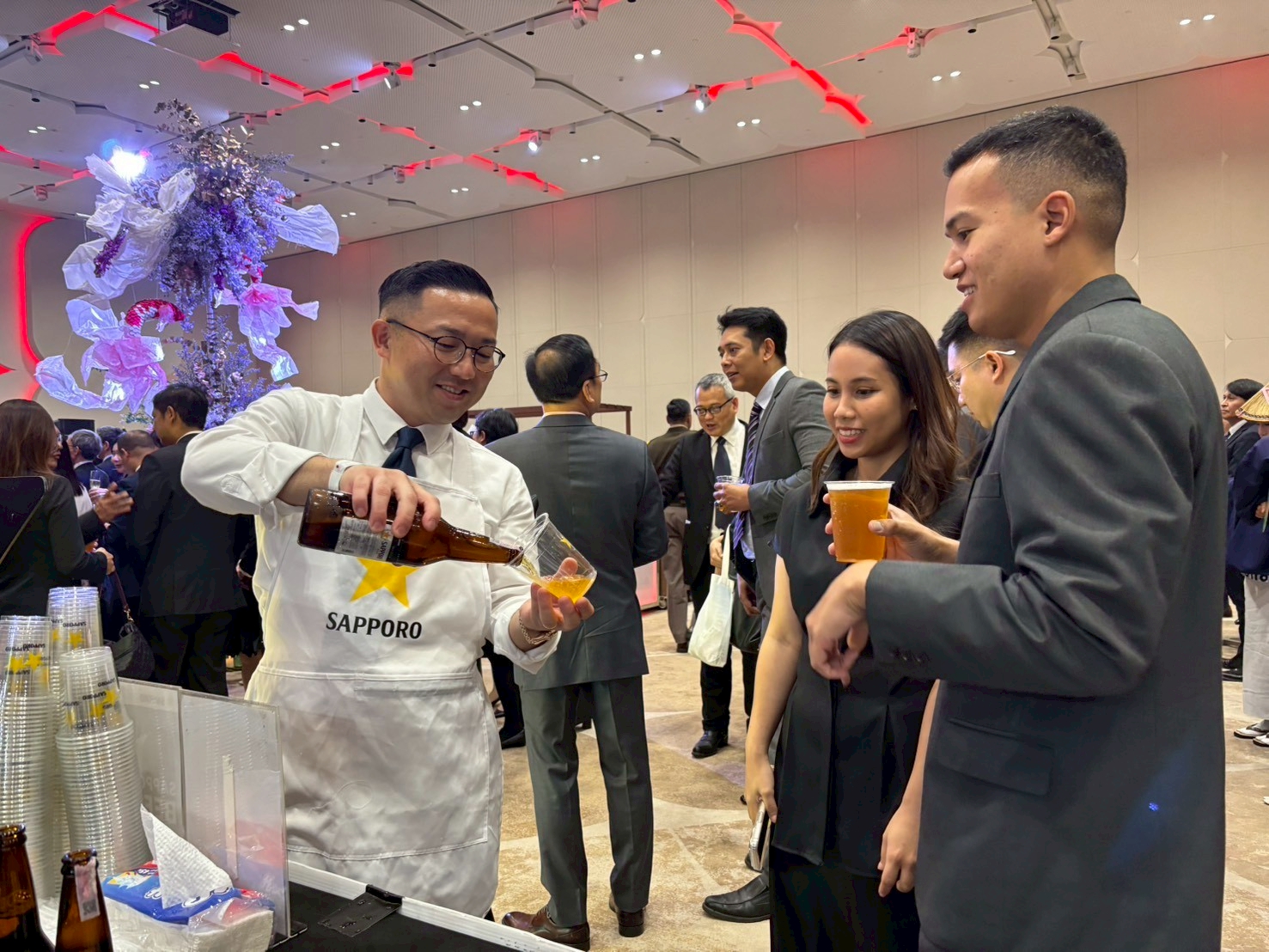 During the event, the company proudly presented Sapporo Beer along with premium F1 Wagyu beef as part of this significant celebration,